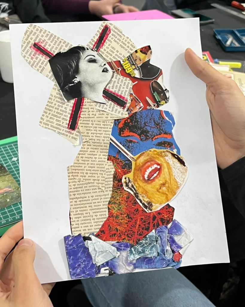 En esta ocasión, el desafío fue crear un collage con uno o más personajes centrales que representaran una emoción. Una experiencia intensa que combinó conversaciones, risas y música de fondo 😌🎶✂️.